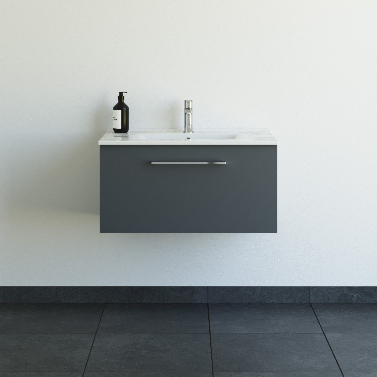 Dansani Mido+ møbelpakke 81cm med Amber håndvask og 1 enkel og stor skuffe med soft close og greb, Mat grå  - art.nr. MMA-6110