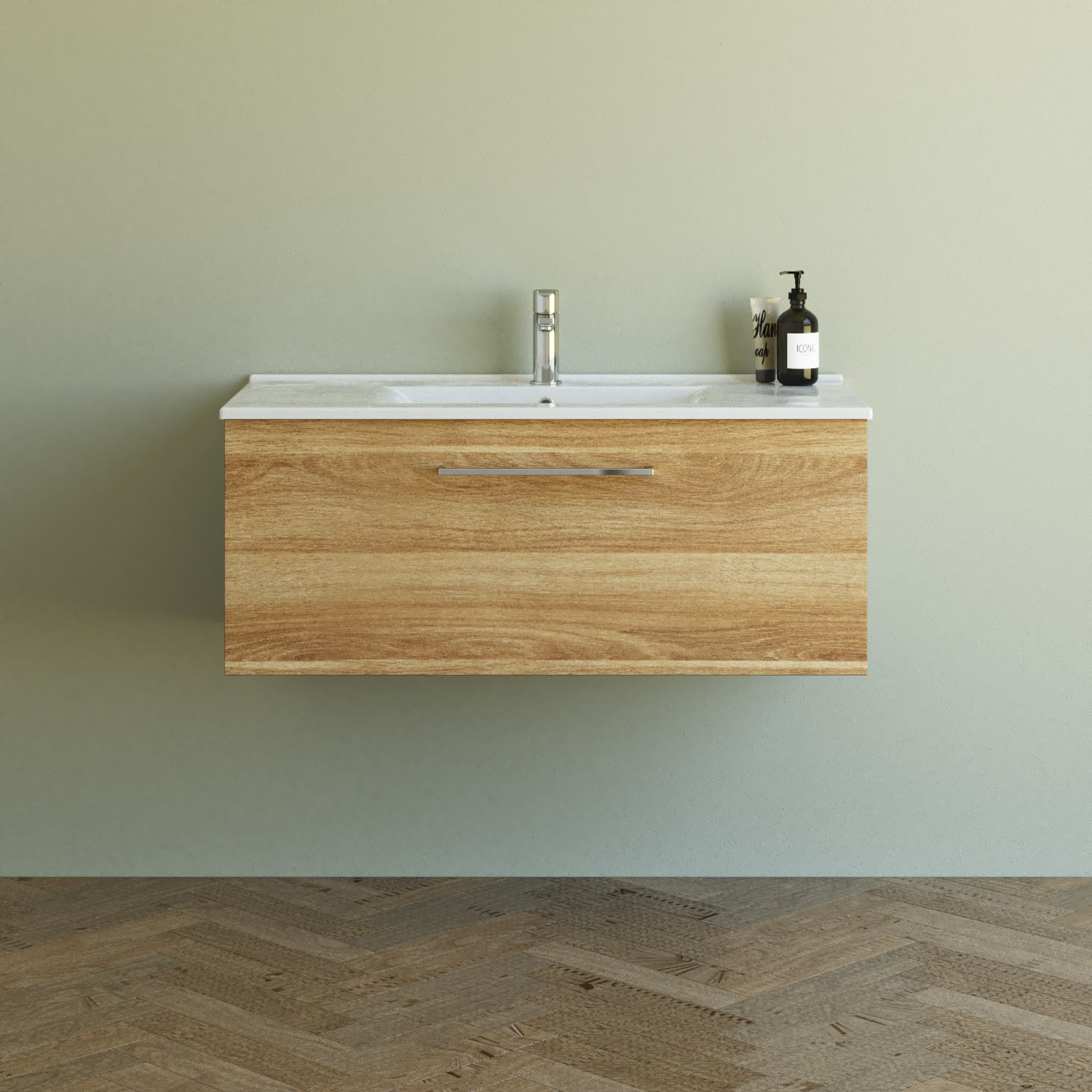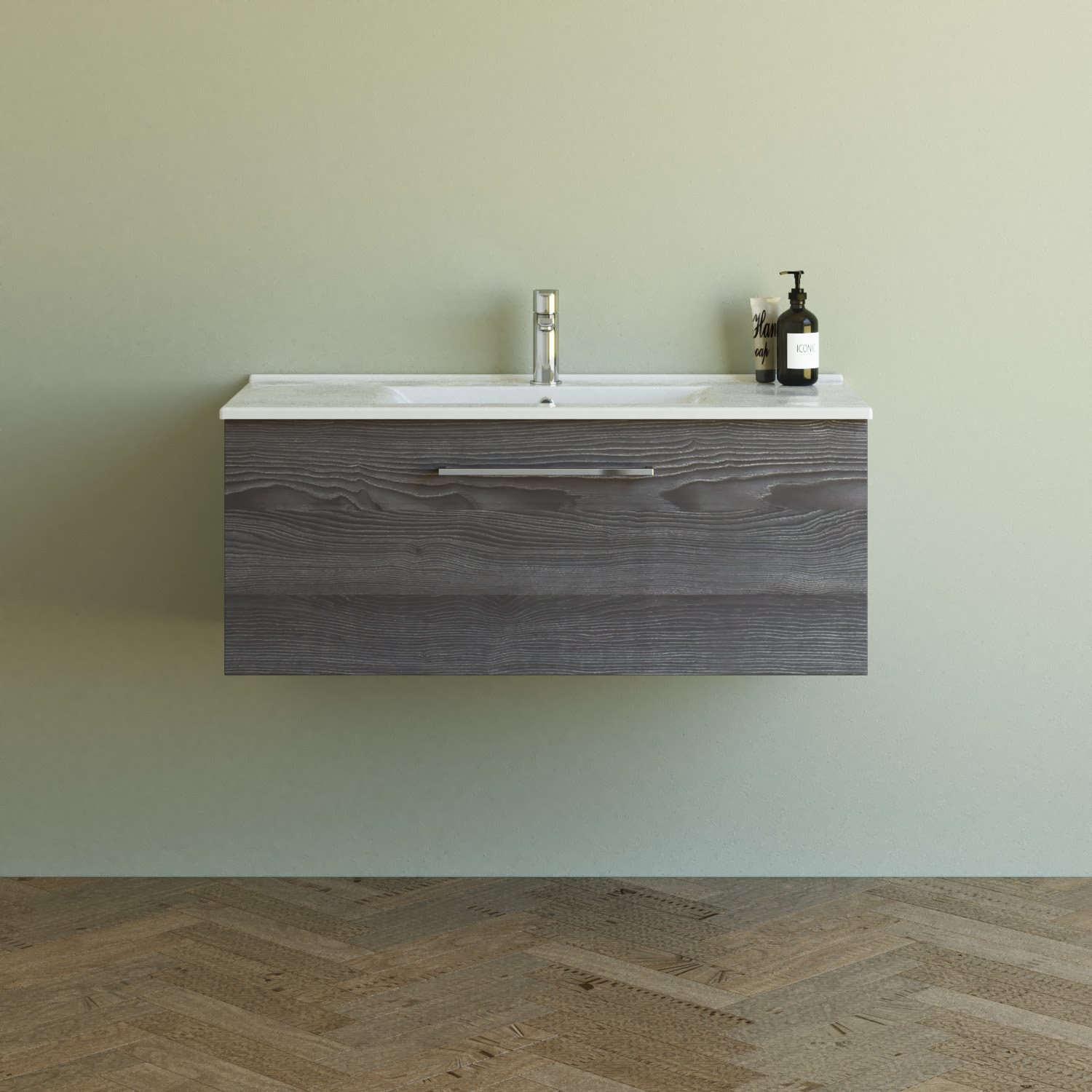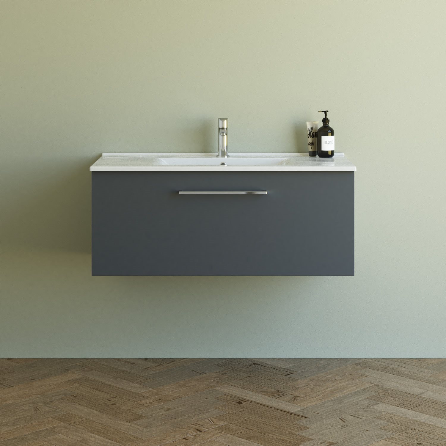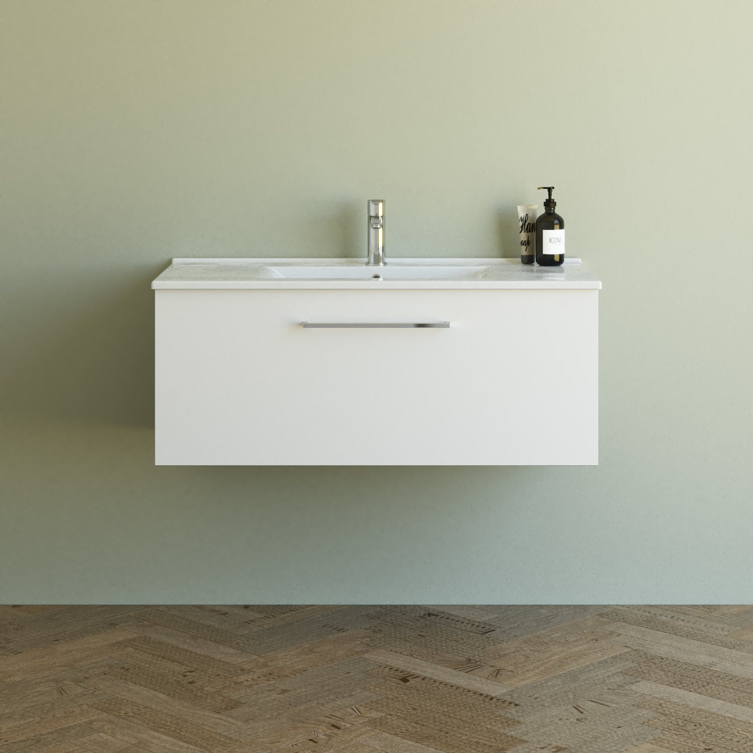 Dansani Mido+ møbelpakke 101cm med Amber håndvask og 1 enkel og stor skuffe med soft close og greb, Fås i flere farver