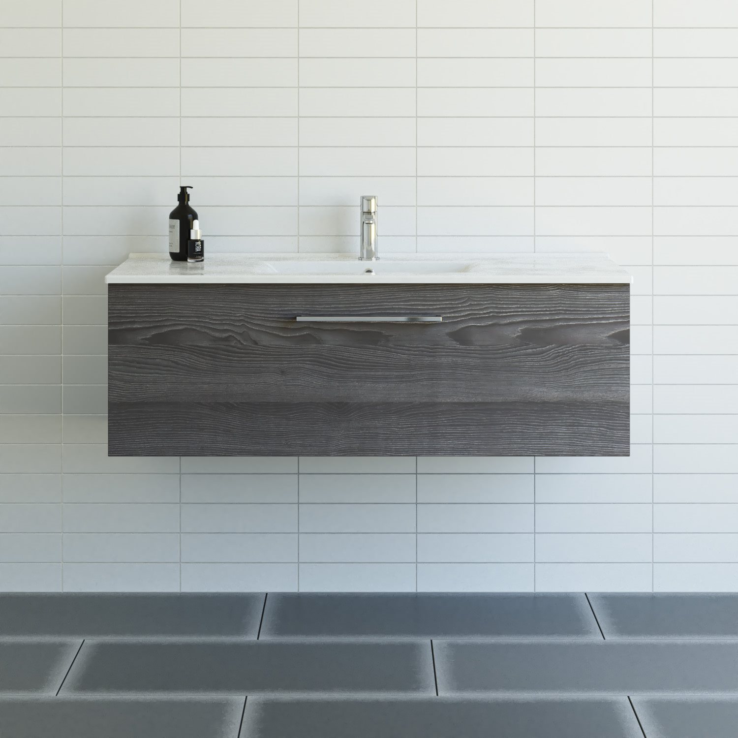 Dansani Mido+ møbelpakke 121cm med Amber håndvask og 1 enkel og stor skuffe med soft close og greb, Pine grey - art.nr. MMA-6317