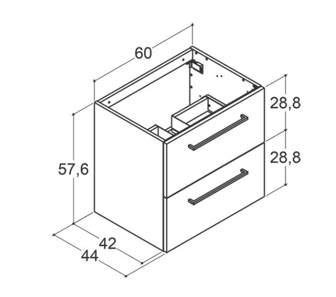 Dansani Mido+ vaskeskab med 2 soft close skuffer og greb, Sort struktur