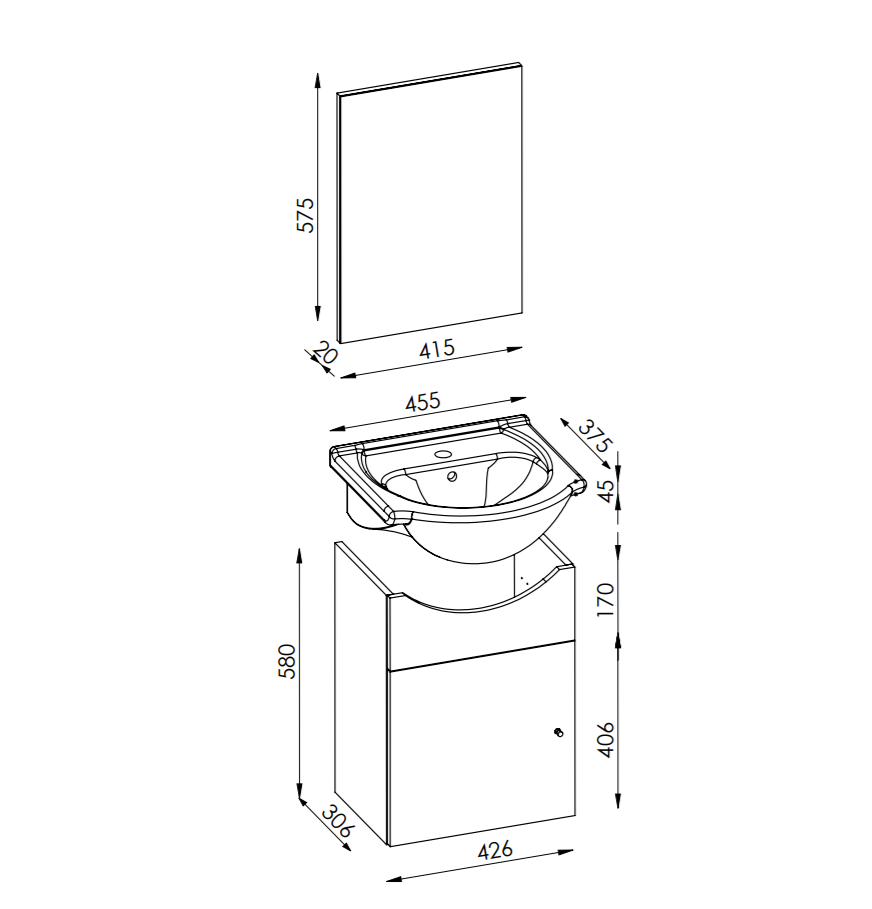 • Underskab (B x H x D: 426 x 580 x 306mm)