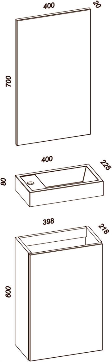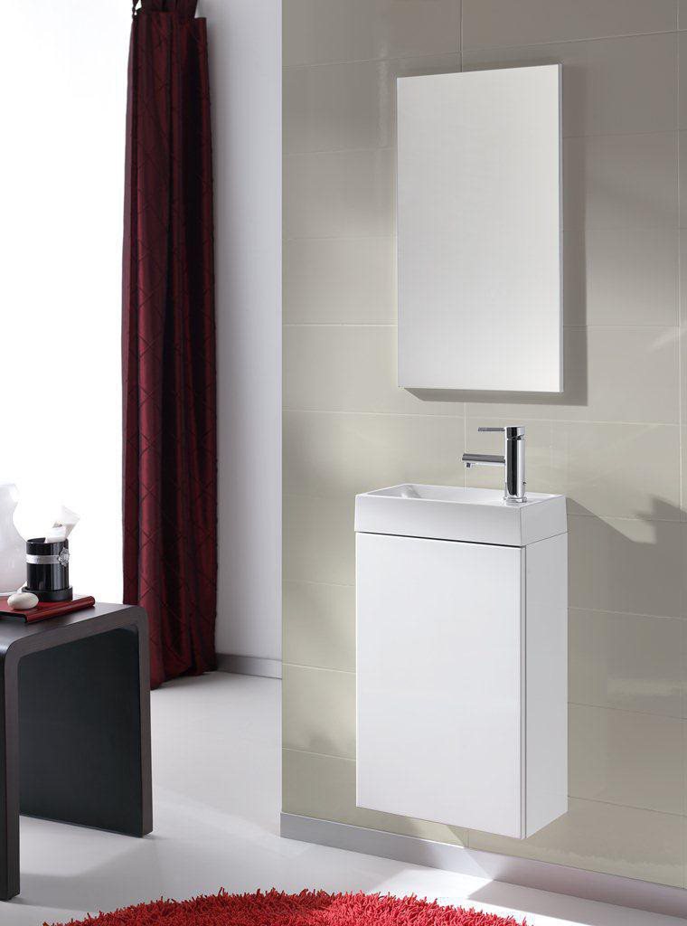 Den perfekte møbelpakke til det lidt mindre badeværelse eller gæstetoilet med sin bredde på 40cm og lave dybde på 22,5cm. I Dansani tilbuddet får du både et kompakt badeværelsesmøbel samt spejl i flot og tidløst design.