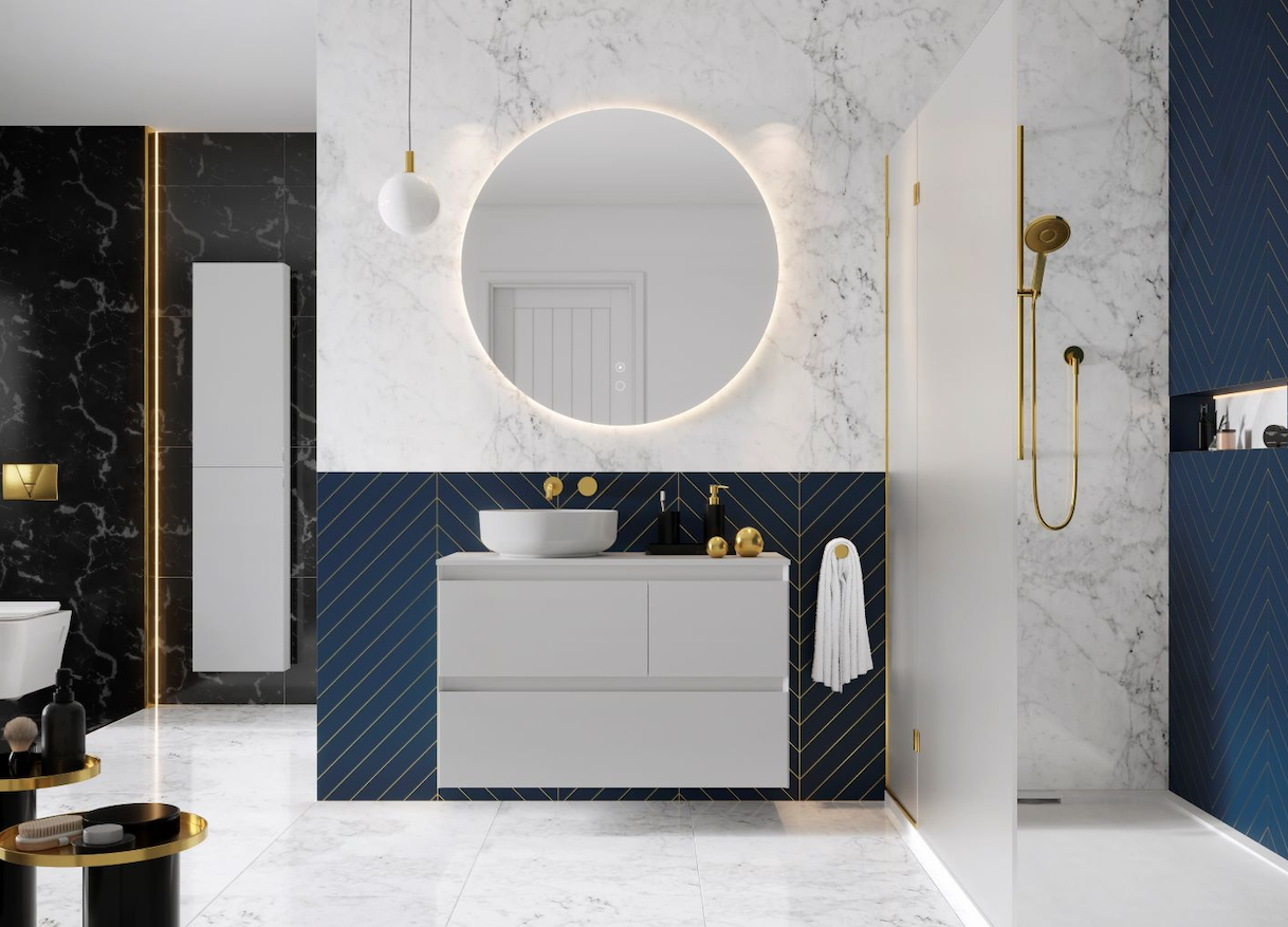Spejlet har hele vejen rundt en integreret LED-baggrundsbelysning med mere end 30.000 timers levetid, hvilket giver dig et tidløst spejl med et smukt glorielys og passer designmæssigt ind i de fleste badeværelser.