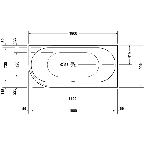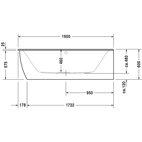 Dette Badekar leveres uden bensæt, gummitætningsliste, befæstigelse og af-og overløbssæt som er tilkøb.