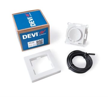 DEVIreg™ Basic er en brugervenlig og pålidelig, programmerbar termostat designet til styring af elektrisk gulvvarme med maksimal komfort og energieffektivitet. Med sin medfølgende gulvføler sikrer termostaten en præcis regulering af temperaturen direkte i gulvet, så du altid kan nyde en behagelig varme – uden unødvendigt energiforbrug.