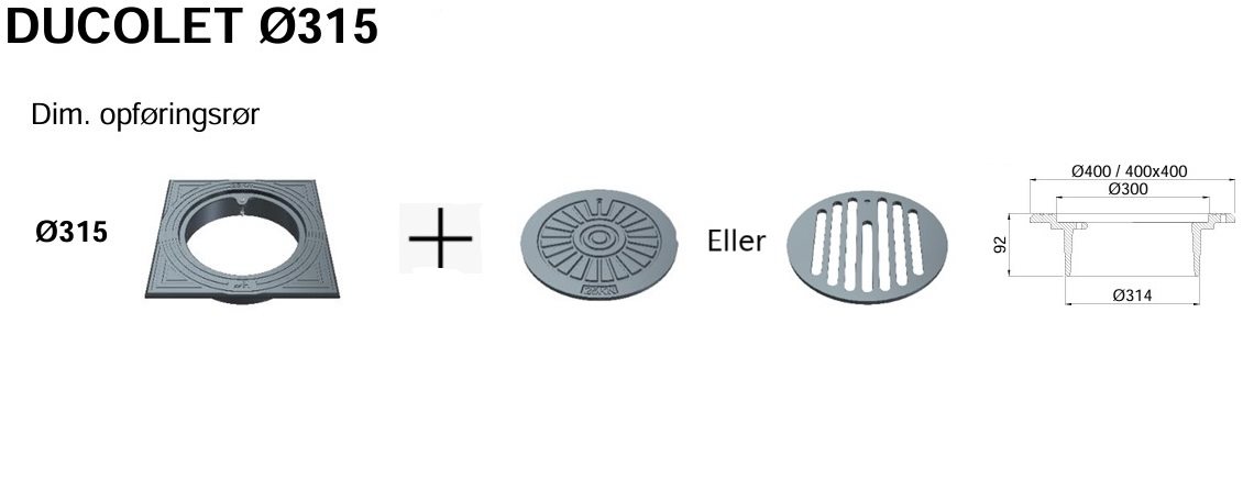 Duco 315 mm firkantet, rørbrøndkarm 2,5 t, støbejern - DUCOLET