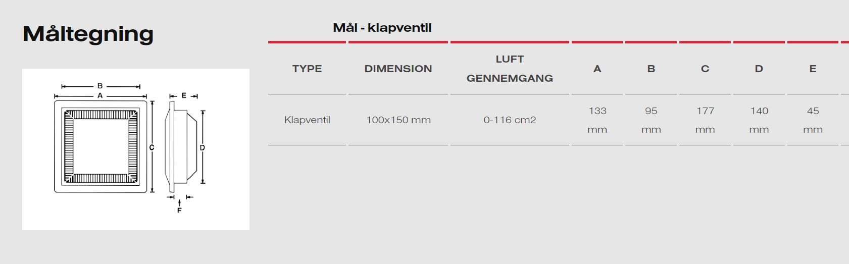 Anvendes som udluftning fra køkken, bad og bryggers, hvor klapventilen med tvangsåbning sikrer konstant grundventilation.