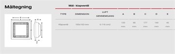 Duka Klapventil med 20% tvangsåbning - 100 x 150 mm, hvid