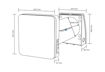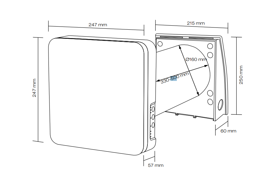 Løsningen består af en murgennemføring med keramisk veksler, udvendig hvid stormskærm, indvendig lav-energi tovejs-ventilator samt fjernbetjening.