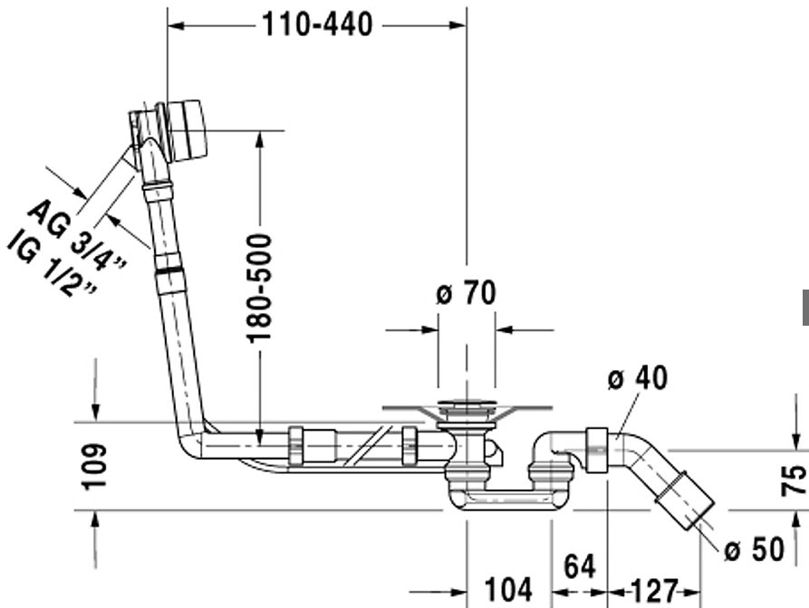 Duravit Af- og overløbssæt Quadroval, afløbsgarniture 1 1/2 til badekar, krom