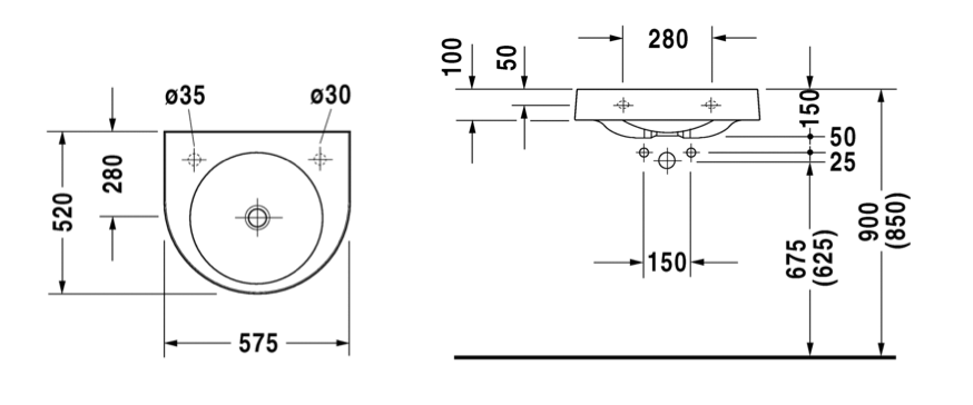 Duravit Architec vask 58cm uden overløb med hanehul venstre og