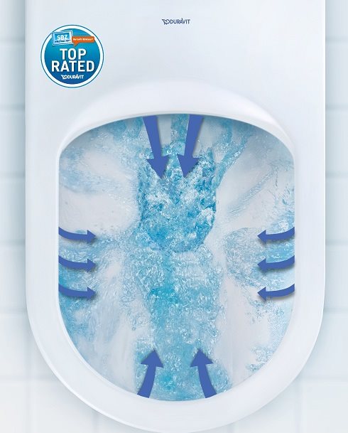 Toiletter fra Duravit med åben skylle-rand (Rimless) betyder, at skyllekanten er fjernet, så skidt og snavs ikke længere kan gennem sig under denne. Dette øger rengøringsvenligheden væsentlig.