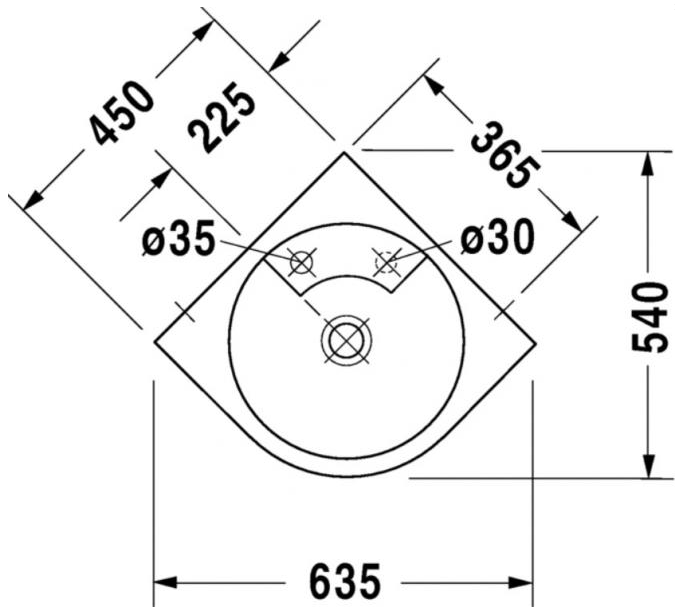Duravit Architec vask 45cm til hjørne, uden overløb med hanehul