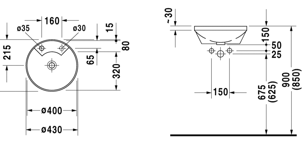 Duravit Architec vask til underlimning 40cm uden overløb med hanehul