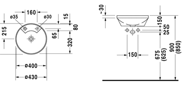 til underlimning, uden overløb, med platform til hanehul, inkl.