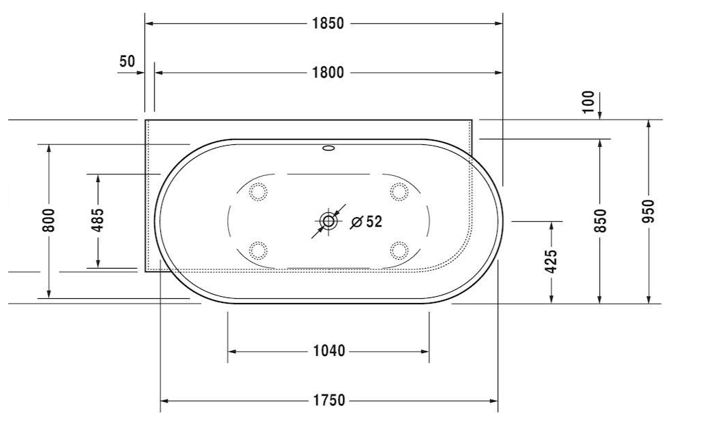 Duravit Badekar Luv 1850x950mm Hvid, venstre