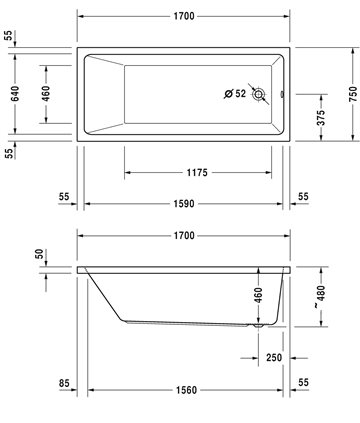 Duravit Badekar Vero Air 1700 x 750 mm til indbygning.