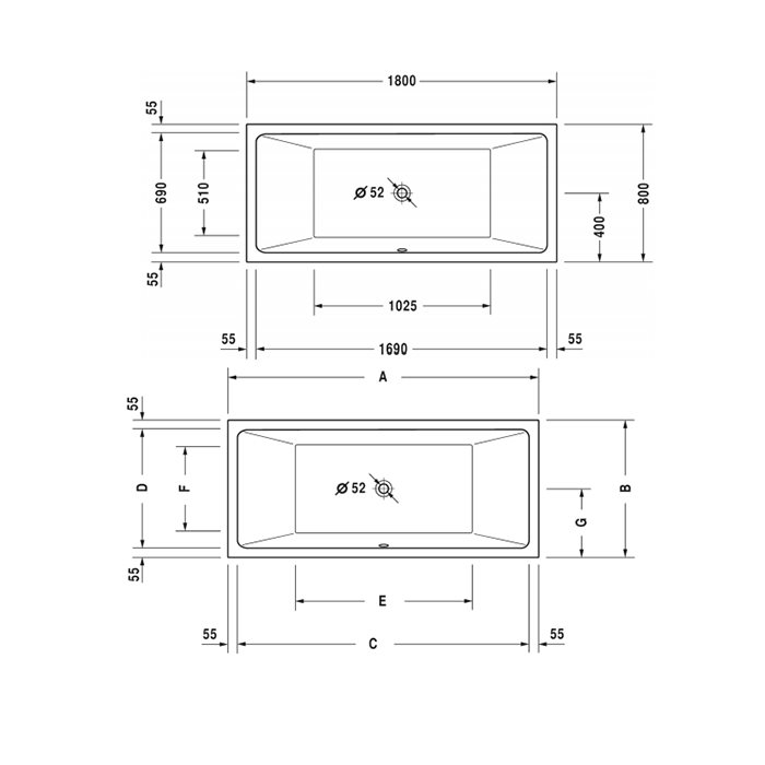 Duravit Badekar Vero Air 1800x800mm Hvid, til indbygning