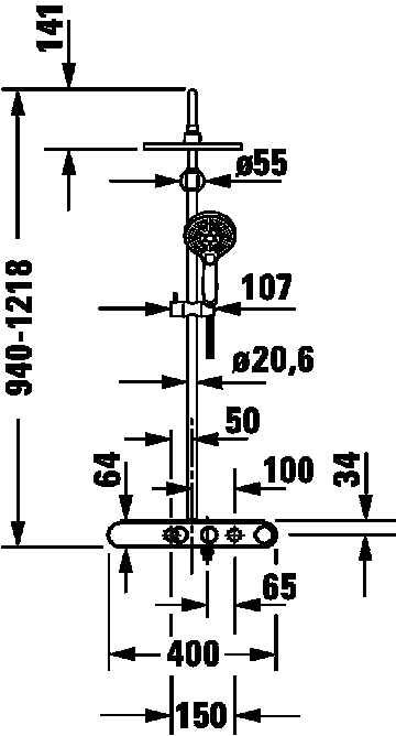 Duravit Brusesystem Shelf 1050 MinusFlow, inkl hånd- og hovedbruser i krom