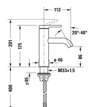 Duravit C.1 1-grebs armatur, 143x40x175 mm, keramisk kartusche, perlator med justerbar stråle, normalstråle, anbefalet driftstryk 3 - 5 bar, - C11020002046