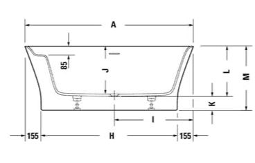 Duravit Cape Cod badekar 1855x885mm fritstående, med integreret panel Solid Surface