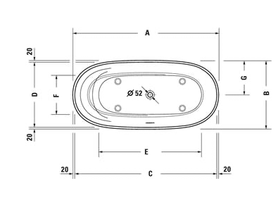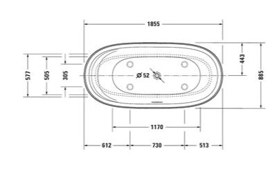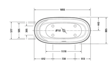 Duravit Cape Cod badekar 1855x885mm fritstüende, med integreret panel Solid Surface Badewannen