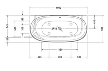 Duravit Cape Cod badekar 1900x900mm back-to-wall, med integreret panel Solid Surface Badewannen