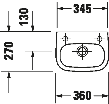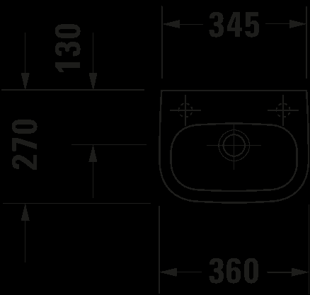 Duravit D-Code 360 mm vask uden hanehul - billedet viser hanehul til højre