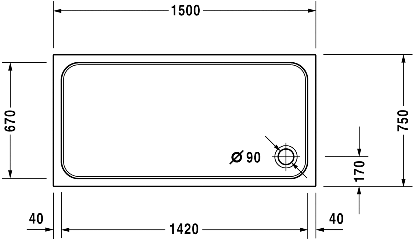 Duravit D-Code brusekar 1500x750mm  Duschwannen
