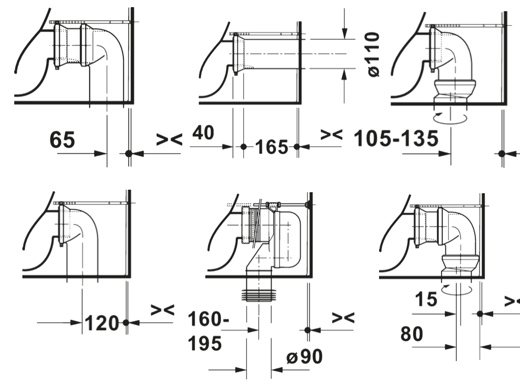 Dette elegante gulvstående toilet er med universallås (afgangsrøret kan både føres i gulvet eller direkte ind i væggen) Toilettet kan under givne omstændigheder placeres helt op mod bagvæggen (back-to-wall)