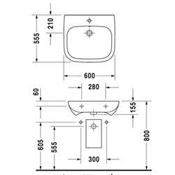 Duravit D-Code håndvask 60x55cm med hanehul for boltemontering