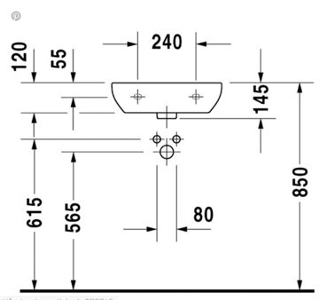 Duravit D-Code håndvask 45 x 34 cm uden hanehul og til vægmontering