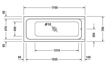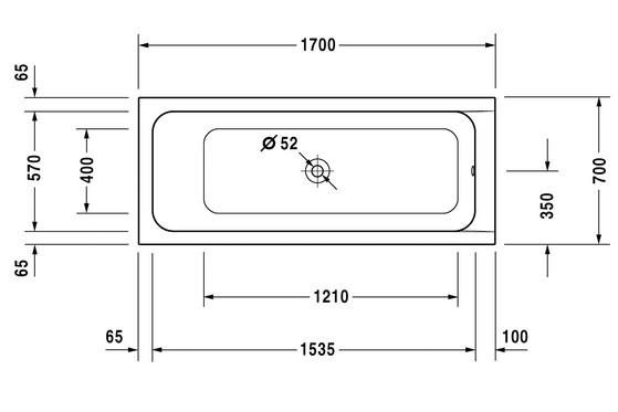Duravit D-Code indmuringskar centralt afløb - 1700x700mm - 4 mm sanitetsakryl