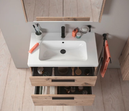 • Rummelig opbevaring: To skuffer med god plads til badeværelsesartikler