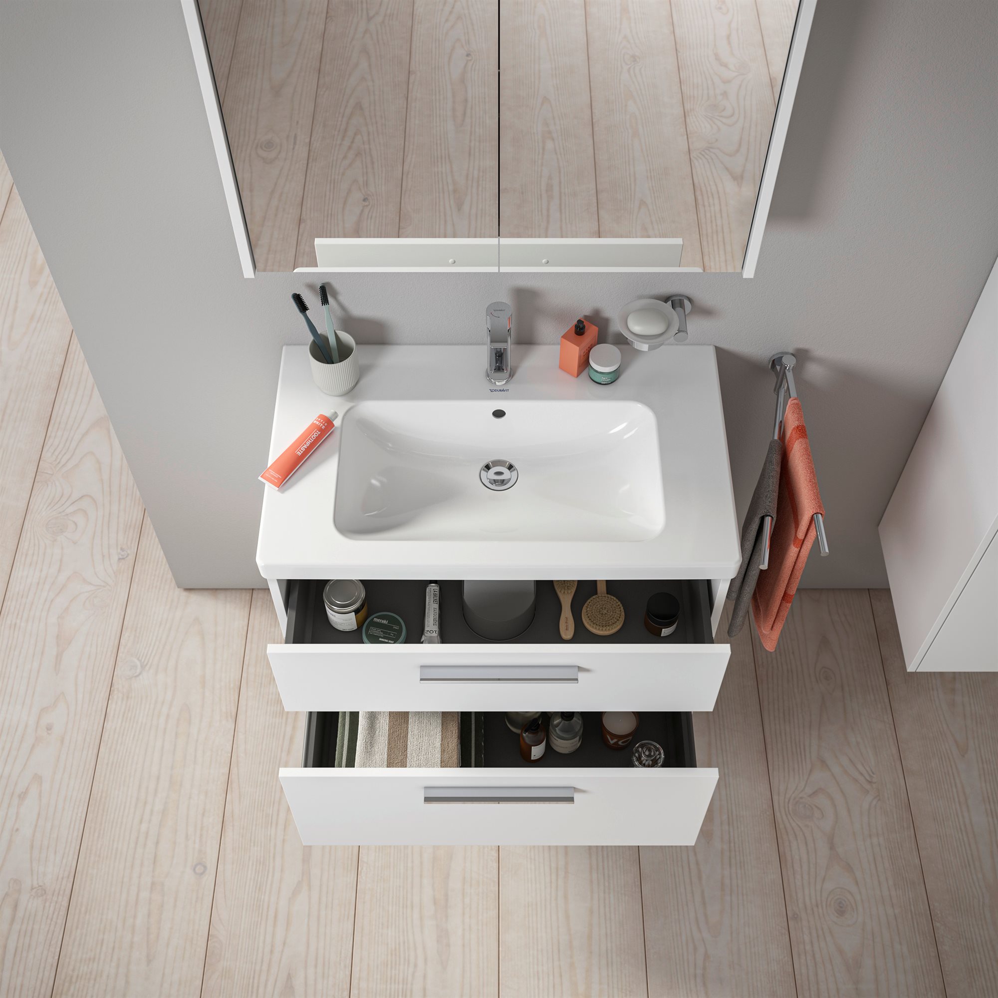 • Rummelig opbevaring: To skuffer med god plads til badeværelsesartikler
