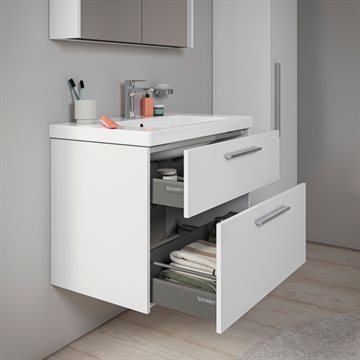 • Rummelig opbevaring: To skuffer med god plads til badeværelsesartikler