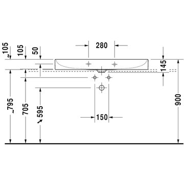 Duravit DuraSquare håndvask 100 cm, Uden hanehul