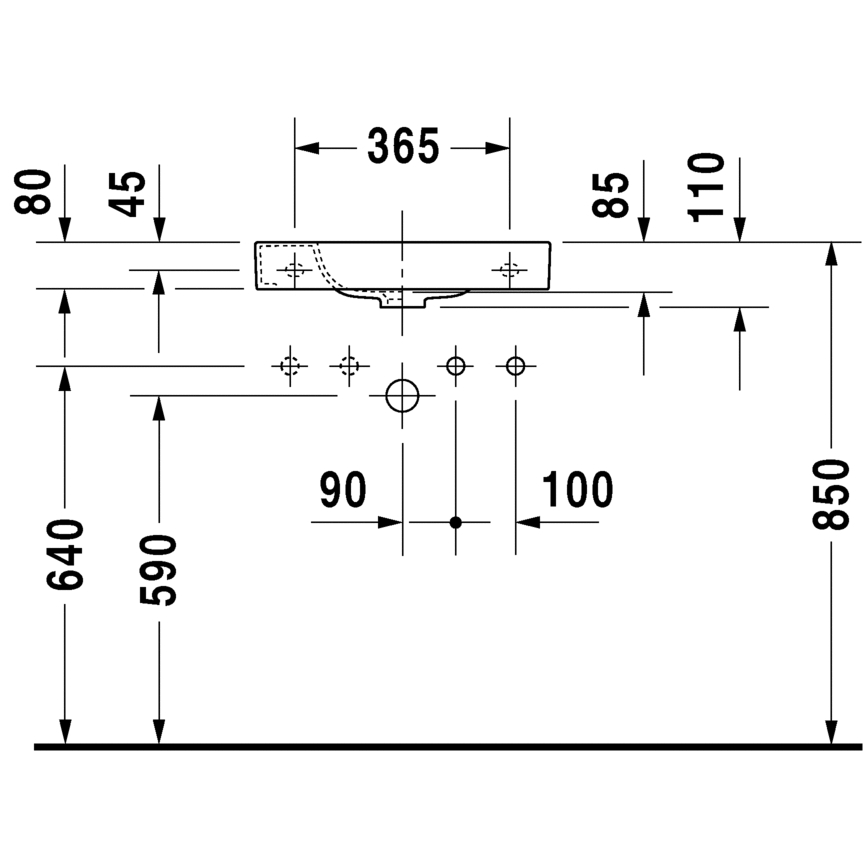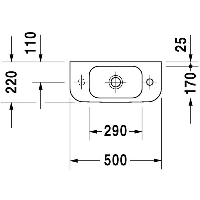 Duravit Happy D.2 håndvask 500 x 220 - Med hanehul til venstre