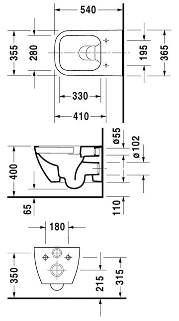Duravit Happy D.2 væghængt toilet - uden skyllerand 365x540 - kort model