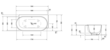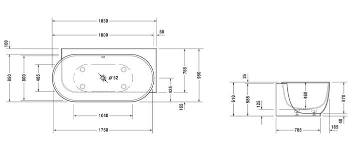 Duravit Badekar Luv 1850x950mm Hvid,höjre hjörne,sömlös panel Solid Surface Badewannen