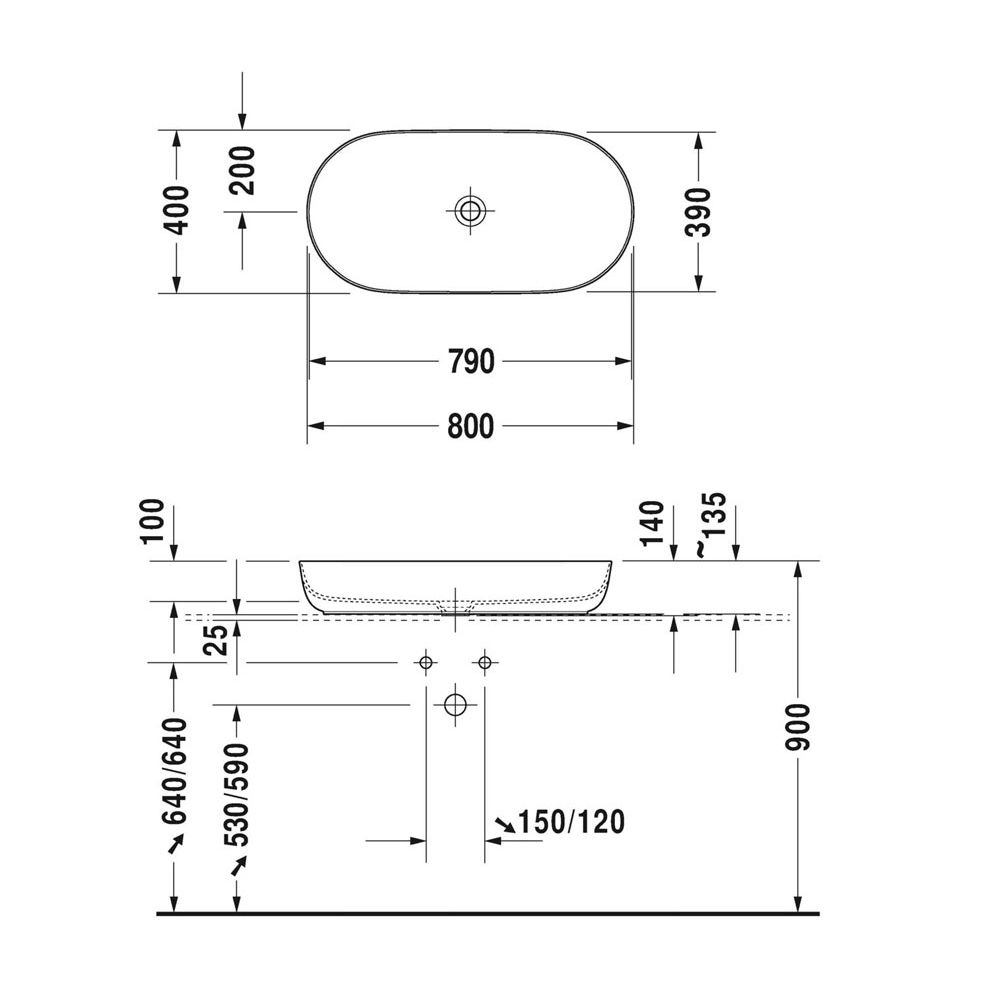 Smuk og dekorativ håndvask i høj kvalitet til montering direkte på bordplade eller skab i dit badeværelse, hvor afløb og vandtilslutning bores igennem denne. Det er en populær monteringsform, der giver masser af indretningsmuligheder, der henleder ens tanker til det klassiske vaskefad.