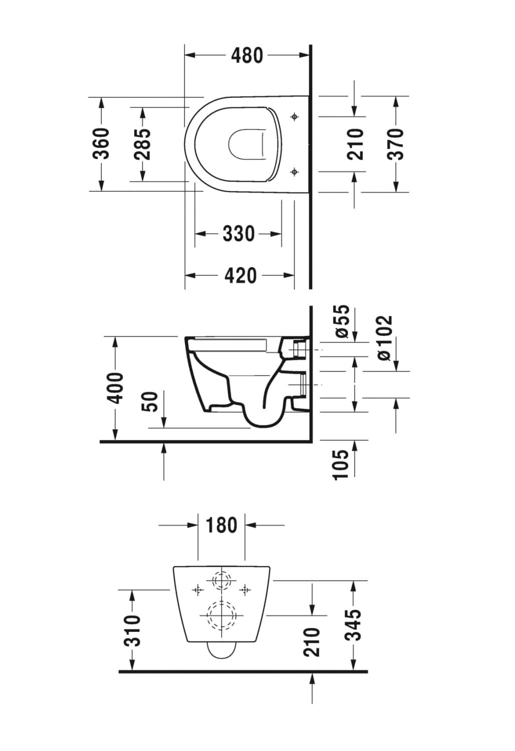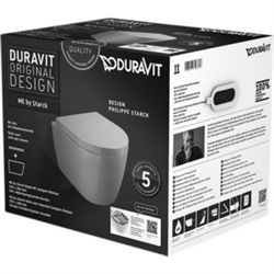Duravit ME by Starck compact væghængt toilet med Åben skylle-rand og softclose sæde.