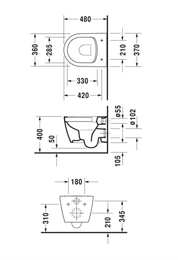 Et væghængt toilet fra Duravit ME by Starck serien, er beregnet til ophæng på en indbygningscisterne. Den væghængte wc skål kan ophænges på alle anerkendte indbygningscisterner uanset fabrikat. En hænge toilet-løsning fra Duravit bidrager til et let og luftigt look på badeværelset.