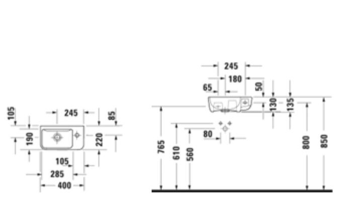 Flot håndvask til vægmontering - denne væghængte vask til badeværelset monteres med bolte. For stabil befæstigelse anbefaler vi monteringsbolte med flangemøtrik og bøsninger af nylon, da de har stor styrke og skåner porcelænet, da der ikke er direkte kontakt mellem skruer og porcelæn.
