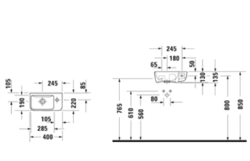 Duravit ME by Starck håndvask 40x22 cm, hvid hanehul til højre