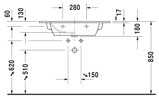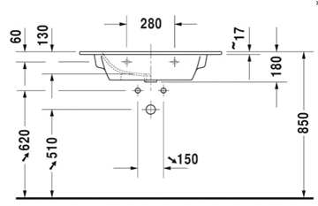 Duravit ME Starck vask 830x490 mm. Med hanehul og overløb