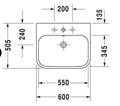 Duravit Møbelhåndvask 600mm Happy D.2 Hvid, med overløb med hanehul
