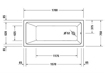Duravit No.1 badekar til indmuring, rektangulært - 1700 x 750 mm