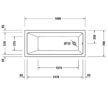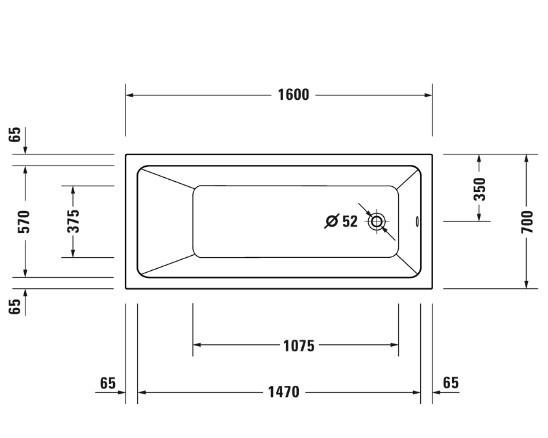Duravit No.1 badekar til indmuring, rektangulært - 1600 x 700 mm