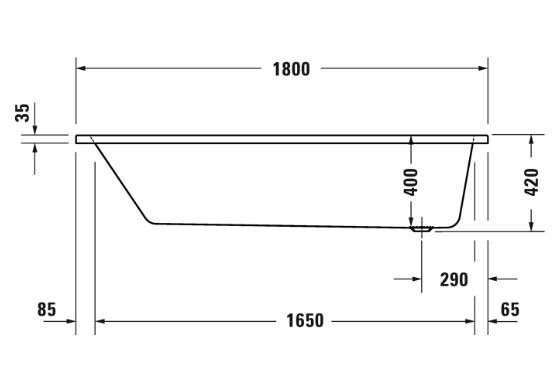 Duravit No.1 badekar til indmuring med afløb i fodenden, for indbygning eller panel 5 mm sanitærakryl - Farve: Hvid - Badekarret er vendbart.